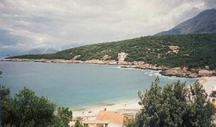 unter Einwirkung der Meereswellen die Höhle Wolfsgrotte (Shpella e ujkut).