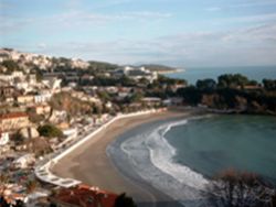 very end of the beach, beneath the Old Town, where the walls emerge as